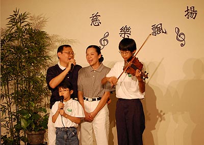 好聽的慈濟歌一一呈現,含蓋了環保、慈善、醫療、人文,不同曲風的慈濟歌,但都展現美善的慈濟人文。裕隆師伯家的兩位小菩薩,由哥哥拉小提琴,Amanda唱「地球的園丁」,唱出對地球的疼惜,希望喚起大家對地球對環保的重視。慈少們也準備一首「手牽手」來共襄盛舉,充分展現了年輕人的活力,與會大德們也跟著擺動著雙手一起唱和。贊樞師伯說,在婚姻生活中,總是需要另一伴的付出甚至是長期的照顧,所以「牽手」的歌詞中有一句話讓他特別有感觸,「也許有了伴的路,今生還要更忙碌」,但是因為愛,讓彼此相互扶持,更容易體會對方的悲傷、痛苦、快樂和夢想。