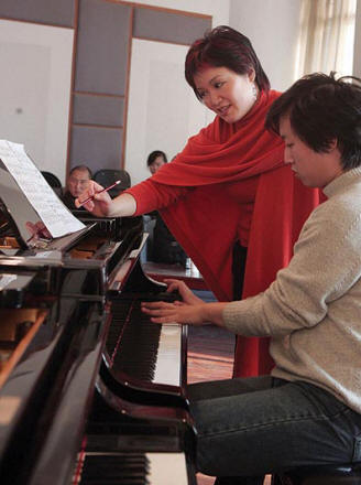 安麟在上海緊張的排練中還抽出時間到上海音樂學院去敎碩士學生上鋼琴課,她對敎課有一種責任和使命感,她除了敎學生們鋼琴技能以外,她還對學生參與比賽做心里上的指導。她説:“我覺得音樂不是田徑項目,比賽只是讓新人有一個機會,但有時是不是公平的, 第一名不一定是最好的,每個評委的口味、標準相差很大,勝者往往是妥協、平衡的結果。”她還對年輕演奏者説:要創造,不要只一味模仿,要注意音樂的本質,而不是僅僅在技巧上下功夫,就像寫詩,有的詩很華麗,語法都正確,卻不是好詩,有些詩語法不都正確,很樸素、很天眞,但非常動人,卻是偉大的作品。