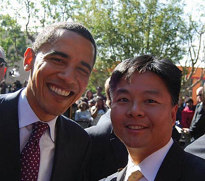 劉雲平曾被新任總統奧巴馬任命爲他個人在加州的競選代表 |