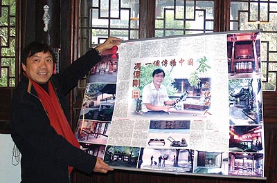 越是民族的,就越是世界的,因爲馮偉剛開的茶館與衆不同,他的名聲和他的茶館一起在中國一家接一家開業,上海的,杭州的和昆明的,一家比一家開的興旺。現上海城皇廟里,一個最熱鬧地點,樓房已經建造十年,政府沒有向外租,2008年,政府看準馮偉剛並和他簽了十年合同,在他裝修期間免費房租,十年里每年給馮偉剛50萬,給十年,我問馮偉剛,那您第一筆裝修要花多少,他回答至少800萬。今年五月能裝修完。他歡迎華報帶客人去他的茶館。