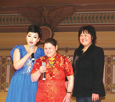 “這是中美第一次在台上合作。”講話象唱歌的王莉高興地説道。而凱文走下台對我説的第一句話是“你知道當你帶我走上台的時候,我的心臟加速跳動。”我只記得當時我讓凱文上台的念頭是:主持人時刻提到他們來自中國,在佳節來臨之際來到萬里遙遠的美國慰問同胞,而那一刻坐在台下的我和上千位中外嘉賓一起欣賞這台精心策劃的文藝節目,我要讓祖國的藝術家知道,海外華人感謝他們放棄和家人團聚過佳節而來到美國,匹兹堡當地也有一位這么愛中國的美國人,她也願意把她心中的愛和你們一起分享。同時能讓美國人看美國人心中的中國,瞭解中國人和中國文化,這也就是我們海外華人爲什么要弘揚中國文化的目的。