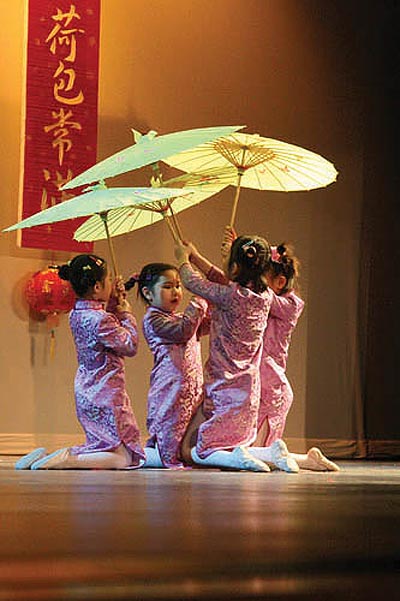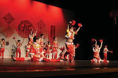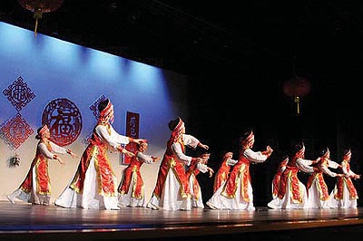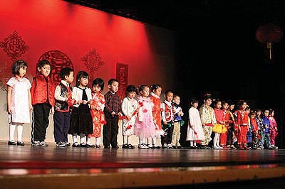 在下午3個多小時的演出中,有近40個文藝表演,包括獨唱、合唱、各類舞蹈、武術、小品、朗誦、樂器合奏、古箏、小提琴、鋼琴演奏等豐富多彩的節目,張小倫老師設計的舞臺背景也將那些精彩紛呈的各類演出烘托得更具節日氣氛。學生們用他們精彩的表演展示了他們在中文學校取得的成績,校領導、敎師及很多非華裔學生的家長也和孩子們一起參加了演出。會後, 920多人參加了會餐,超過1,000 人參加了猜謎語、玩遊戲、舞會、打牌等新春聯歡活動。