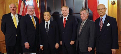 From left: Stewart Chase, Dir, Boggs, Dept. of Agricultural, Amb.Peng Ke Yu, Governor Strickland, Dir. Barbash, Dept. of Development, Anthony