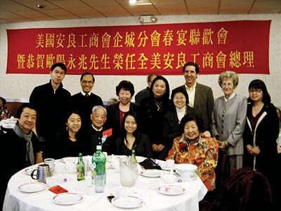 現任全美安良工商會主席歐陽永兆首先感謝大家一起來參加慶祝春宴,歐陽永兆發言中提到全美安良工商會爲中美兩國經濟文化做了不少貢獻,尤其去年四川地震後,全美安良工商會捐錢辦學校,還專門爲孤兒辦學校,在中國建造工厰企業等等。同時他也希望未來大家共祝安良不斷進步,馬到成功。