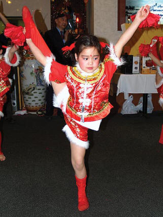 安良工商會醒獅團在牛年新春宴上,醒獅齊舞賀新歲,任由老少多多紅包扔醒獅口,鑼鼓齊鳴,加豐盛的食物,雖冒着嚴寒天氣,還是一片歡笑祝福聲。中文學校小朋友的舞蹈節目爲晩會增添喜色,這要感謝三姐妹的大姐開設的 “明日之星” 舞蹈班培養了一大批明日之星。