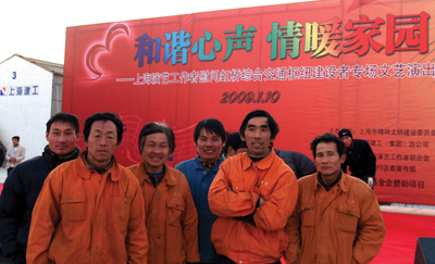 近十幾年來,民工爲中國現代化建設做了許多貢獻,城市里的摩天高樓,地鐵,所有的施工和建築離不開民工今年年初我有幸參與一次有上海精神文明辦和其他演出團體舉辦的慰問民工新年演出。上海的冬日,刺骨的寒冷,民工們感謝演員們的眞誠慰問,我在舞臺的後面對民工做了採訪。