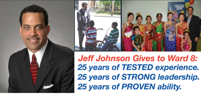 我認識Jeff Johnson 是在幾年前,他是在克城女市長Jane Campbell上任期間,擔任克里夫蘭市政府公共關係部主任,Jeff富有才幹、勤勉刻苦、熱情熱忱,他是一位擁有25年以上爲社區熱忱服務經驗的社區組織者。由於二年前他離開市政府,自己開辦了政治顧問公司,二年後,他發現他還是喜歡從事政治,他要再次參與競選,爲社區民衆服務。