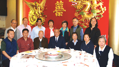 台灣國際大德前輩崔盛德先生(前排中) 紐約大德前輩金先生(左三)全美安良主席歐陽永兆(左二) 天然寺負責人賴經理(左五)和部分當日參加開關儀式的後在阿唐海鮮城用素食