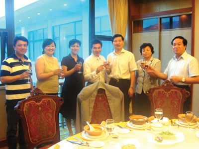 每次回中國,總是要到鎮江去看老朋友。七月二十二日晩上,鎮江陳市長和僑聯許主任宴請了我和在鎮江發展房地産的倪舉凌和李路,當日還有鎮江市政府秘書長周鳳霞女士陪同。我們大家聊鎮江的發展,伊利華報前途等,大家聊得十分投緣。在宴會上,陳市長表揚了倪舉凌先生的能力,在鎮江房地産低潮的時候,倪老闆購買了土地,現在倪老闆的聯豐公司成爲鎮江新一屆“地王”。大樓命名爲“聯豐·尙東國際”,在鎮江是銷售最好的樓盤,七月十八日,倪老闆在鎮江宴請了50桌,慶功他們的樓盤在鎮江打的第一勝仗,他們將在今年還要繼續在鎮江投資房地産和其他新科技項目。