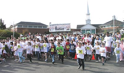 早晨,天氣晴朗,和風輕拂,氣溫在華氏50度。今天是Hudson社區的春季短跑比賽,主題是“爲生命而跑” (Run 4