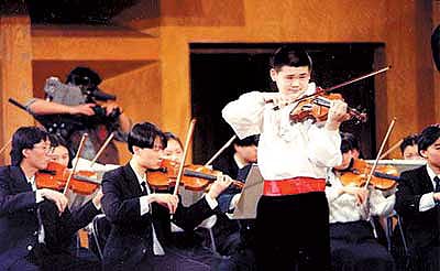 李傳韻只有八歲, 但他在演奏時已經儼然是一位音樂大師了。