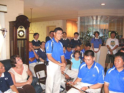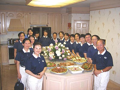 克里夫蘭慈濟志工在七月三十日晩在順堂師姊家,用心製作了十二道色、香、味具全,豐盛的素食加上鮮美的水果、甜點,邀請了十九位球員、敎練、領隊、隨隊義工以及十位美國盲棒總會的主席和工作人員。茶會會場並配置著“靜寂之美”的揷花藝術,使晩會感覺更加溫馨!