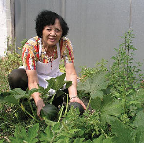 伍太太在“佰億大酒樓”後園種的日本品種的南瓜