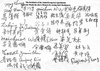 支持挽救亞洲常靑公寓基金籌款超過預期目標,常靑公寓大樓終于保住了! 克城2006年9月9日