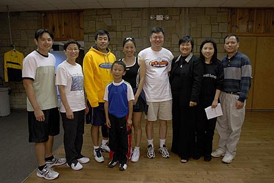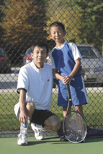 組,明年不會讓他這么好運了。女子組的第一名當之無愧的落入相當專業的謝華的手中,據説她擊敗她丈夫是“很輕鬆”。第二名簡呼延群已經有半年沒有觸摸網球了,不過她很高興這次能夠遇到如此強勁的對手,也很期望有與謝華再次一較高下的機會。値得一提的是我們還有一位年僅11歲的選手,你千萬不要被他的年齡和外貌所迷惑,他可是正在接受專業訓練的明日之星,Frank
