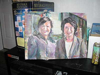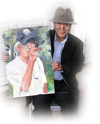慢慢地我們開始熟悉,他六十年代從台灣到美國來留學,學的是藝術,畫畫和電影,因爲藝術不容易吃飯,他就和他的太太在威斯康新開了一家意大利餐館,生意好得不得了,就許先生説的那時賺錢就象流水一樣,他很旺。在他頂峰的時候,許氏人參的許老闆找到他,説我們倆人都姓許,一起合作如何?當是許智仁先生太太不肯干,説我們現在生活已經是十分單調,接着我們還要去種樹根,不干。許先生想那么我們不種樹根去紐約發展,他是畫家,他在時代廣場最熱鬧的地方開了畫廊還是二層樓,這不是鬧着玩,獃在紐約天天看錢被燒,還是趕快來克里夫蘭和弟弟弟媳一起共同創業,他們到了不久,他的弟弟説中國現在是創業的好機會,他要到中國去開牛排館,許先生紐約一跤還沒有甦醒,説不去中國了,他的弟弟帶着他的洋太太和二個小孩和現金二十多萬,全家浩浩蕩蕩去中國了。八十年代未,中國還沒有對牛排感興趣,他們也在中國折騰二年,全部錢都花完,回美國了,最後還是許先生的小妹在非洲開布店,説歡迎他們去非洲經營布店,許先生的弟弟是很開明的人,雖説丢了這么多錢,但他感到快樂,説他的洋太太能講一口流利的中文,太高興了,現在全家在非洲錢賺的可以生活,一切平平安安很快樂。而許智仁先生他的宇宙修養中心也沒有開成,雖然他沒有他弟弟虧的那么厲害,但也有四萬美元,他現在早上六點去醫院做清潔,中午去日本餐館作壽司,晩上去旅店做調酒師。但他活的很快樂,在本報四周年來臨之際特寫了鐵板書祝賀本報,他還贈送了他的油畫給我。