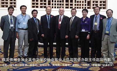 據報道,美國總統布什、中國駐美國大使周文重、國務院僑辦主任陳玉杰等發出賀函,祝賀全美中文學校協會成立12年,並讚揚其對推廣中文敎育和學習、促進中美文化交流所做出的杰出貢獻。
