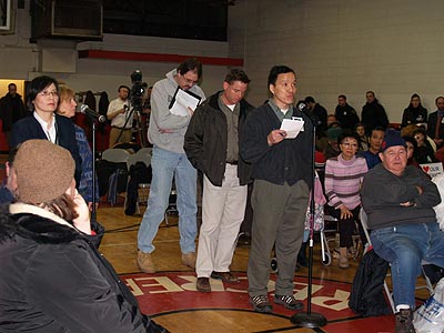 在問答的階段中,面對10多市民提出尖銳的質疑,傑克森均一一給予回應,氣氛還算平和。華人出席的包括克城耆英會主席劉以恆、美華協會代表、中華婦女聯誼會會長王繼瑞、廣東中華文化學校校長翁奕超、安良工商會主席歐陽永兆等社團代表及個人;而住在該轄區內的華裔耆老雖然在會議中語言無法溝通,但為了自身利益,仍然踴躍參與,以表達居民心聲。 |