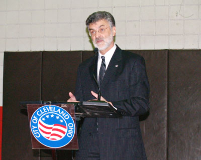 克市市長傑克森日前在史德林活動中心邀請擔任公共安全委員會主席的市議員康維爾(Kevin Conwell)、以及警察總長麥克葛瑞斯(Michael