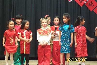 隨後是精釆的文藝節目,由陳守平老師與五位中文班高年級的小朋友主持,他們分別以字正腔圓的中英文,介紹每個節目的表演內容及主題。晩會中安排有語文班華洋小朋友表演的歌謠朗誦「溫暖的家」、「找朋友」;話劇「小熊請客」、「猴子撈月」與「十二生肖」;唱作俱佳的「鄉下姑娘」、「一閃一閃亮晶晶」等多項精彩的演出外,成人班的非華人學生也朗誦「月下獨酌」與「誰在鏡子裏」的舞臺劇,洋腔洋調的中文,十分具有「笑果」。