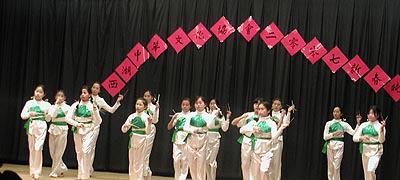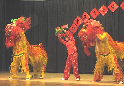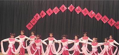 由中文學校舞蹈小班學生所表演的「花燈和獅子」,可愛的造型最受觀眾喜愛;兒童舞蹈男生班也帶來「大旗舞」,女生班的「彩蝶飛舞」、「筷子舞」,整齊劃一的服裝與舞姿,無怪乎成為外界爭相邀請表演的熱門節目。