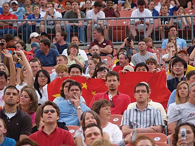 據中國媒體估計當日到場的觀衆人數是8888人。還不到三分之一。不過本次球賽雙方拼搶非常激烈,這也是中國隊美洲拉練質量最高的一場比賽。
