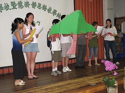 慈濟大班同學演出話劇『大樹』,由郭添輝師兄策劃,用大樹寓意父母如何撫養、提攜他們的孩子。孩子長大後,亦應體恤親恩,照顧孝敬他們的父母。寓意深遠,發人深省。
