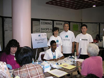 當天除了服務於美健醫務所的兪昌祚醫師與劉晟醫師與護士外,還有多位在該醫療系統服務的血醣、膽固醇與乳房X光的專科醫護技術人員前來協助,現場並有乳房X光檢查巡迴流動車輛。除了都會健康醫療系統的醫護人員外,還有多位華裔志工,在現場協助登記、翻譯、進行健康敎育、準備餐點等服務。