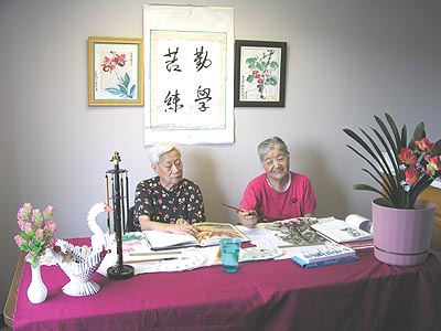 她非常關愛尊敬老人,爲了豐富耆老的文化生活她爲耆老解除寂寞,提高興趣消除自卑增強自信破除無能樹立形象。憑藉這種熱情舉辦三次學習班。通過老師課堂認眞敎,學習細心聽,學員課後勤學苦練,老師多指導,使學員初步掌握了書畫的技巧和基本功,如起筆落筆要定位,枝干粗細要適當,花葉搭配要均匀,花瓣層次要分明,色彩濃度要適度等等。曾經舉辦過二次畫展,在一幅幅展品中,有菊花、梅花、蓮花、桃花、喇叭花、竹、山水等之類。深受廣大觀衆的好評與贊譽,同時給大家留下百花爭艷春滿園的觀感。其中八十二歲高齡的吳麗嫻,初學一幅喇叭花畫,被觀衆一百美元買走。而她卻將所得之款,無私奉獻給華人公寓耆老會。翁品三八十六歲高齡,毅力驚人,始終堅持活到老學到老,生命不息學習不止,勤學苦練的精神,令人十分敬佩與贊譽。