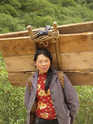 當我在孔雀海湖邊欣賞湖畔美景時,一個身影從我邊上擦過,我拿起照相機拍下這張有意義的照片:這位農家婦女有二個兒子要養,一個兒子在念大學,一個在念高中,她每天要從山底揹東西到山上,一天只能背二次,要八小時,收入三十元人民幣。在我和她講話時,好多媒體同仁都拿錢給她,看着她變型的脊椎大家好心痛地問候她,而她笑得和九寨溝的山水一樣美麗,她説:“我很滿足”。忽然一瞬間我想起我在上海浦東飛機場一家日本餐廳等候飛往成都的飛機時,一位年輕美貌全身上下穿着世界名牌,手上戴金戴鑽石的小姐在打手機:昨晩生意不好,才三個,一個還是小氣鬼,只賺了三佰美元,你怎么樣?(她打三十分鐘電話,我越聽越明白,她的美貌開始變型,不一會兒我看到她坐在飛機場的貴賓接待室,邊上看上去是一個老商人……