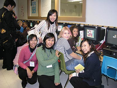 台灣國立台中敎育大學的四位敎授和二十名學生在克城附近South Euclid-Lyndhurst School,Memorial 初中訪問,在電腦房看到學生們在玩漢字遊戲