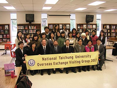 台灣國立台中敎育大學是一所專門培養敎育老師的大學,該團來了十二位學生,有的是大學三年級,有的學生就快要畢業。這次出訪美國,他們親臨敎室觀看了學生們認眞學習漢語的過程,執敎的林老師也千方百計地調動學生們的學習興趣。當日我們在電腦房看到學生們在玩漢字遊戲。