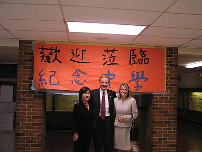 所以當肯特大學的教授問我肯不肯誏來克里夫蘭考察的國立台中師範大學的四位教授和二十名學生來我的中文課參觀的時候、我馬上答應安排他們的來訪。國立台中師範大學的師生來 Memorial 初中參觀的時侯掀起了一陣高潮、South Euclid-Lyndhurst School 的學校總監和校長都來歡迎、請了來訪的學者們吃豐盛學校午餐。在教室參觀時我的學生試著說初學的中文應對、來訪的國立台中師範大學的學生也嘗試著說生澀的英語、友誼己經開始萌芽.當分離的時刻到臨的時候、大家都深表依依不捨的交換電子郵件地址。