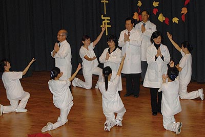 「父母恩重難報經」之序曲,在柔雅的手語詮釋下,揭開活動的序幕。往昔人倫觀念深厚,為人子者為恪盡孝道,在這倫理道德逐漸淪喪的時代,希望藉由此劇,讓演出者與觀眾一同省思父母養育之恩,傳達及時行孝的觀念。由陳福民醫師及小萍師姐主持的十周年節目,藉由四大志業慈善、醫療、敎育、人文來串聯,不同的角色—慈誠委員、社區志工、大醫王、白醫大士、慈靑和小菩蕯,各有著相異的演出風格。謝裕隆師兄及鳳珠師姐演唱『擁抱蒼生』,清亮高昂的歌聲,悸動人心。由委員演出的「靑山無爭」,展現出慈濟精神的柔美與莊嚴;大醫王與白醫大士的「白袍禮讚」,由千手觀音的隊型示現醫護人員守護生命的宏願;原本就為美國慈靑作詞作曲的「就是現在」,在慈靑們自信與充滿活力的表演中,散發出年輕人行善的熱忱,現場來賓也感受到愉快的節奏紛紛打起拍子;此外,小菩蕯的「我願」、「環保小小兵」及「感謝天感謝地」,活潑可愛的模樣,更博得無數掌聲。