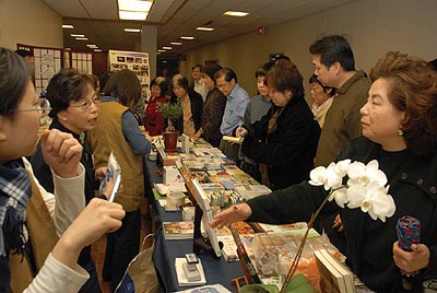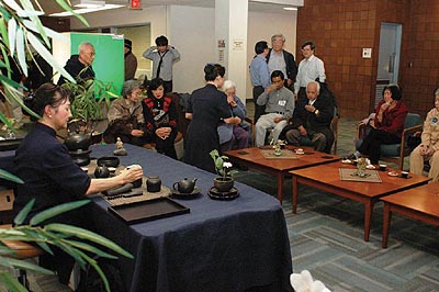 活動結束後,大廳裡洋溢溫馨的人文氣息,靜思文物的展售、順堂師姐眞善美花道,呈現無聲的花語、田師姐為眾人示範靜思茶道,陳福民醫師在一旁解說,慈濟茶道的舉手投足皆有喩函,寧靜的氣氛,讓坐在這裡的人敞開心靈的對話,學習茶道,也是學習人文禮儀。靜思文物總是人潮不斷,因TRI—C內規定不能做現金交易,所以皆是請大德回家後將支票寄回,也願用誠正信實與大德結緣。幾位來自哥倫布市的慈靑,開心的拉著我的手說︰「師姑﹗你們的小菩薩好棒喔﹗」,而來自辛辛那提的吳文男師兄,對活動的安排也表示讚賞,「感覺得到大家都很用心,這趟來實在値得﹗」。一旁的醫療志工更捲起衣袖,為有需要的大德注射感冒預防針。佇立一隅,展現四大志業、八大腳印的海報,像是靜默的體現慈濟的人文精神,佛陀敎育我們︰「一切唯心」,只要守志立願,這條路就沒有困難,感恩師兄姐無所求付出,連綿相承,同心協力為另一個十年而努力。