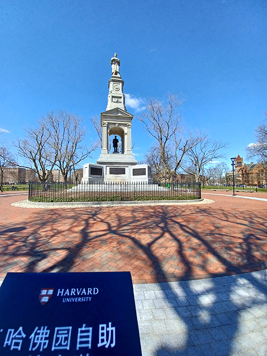 銅像前的大樓挂着美國和烏克蘭國旗,這個世界頂級的大學,他關注着世界的動向,這個地方成就了未來世界的精英。我花了3美元就可以買一張中文的哈佛大學中文地圖,校園里看到無數旅行者的參觀,也看到了不少亞裔人參觀,還可以聽到中文交談。